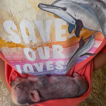 She is a wonderful mama and takes great care of her babies. Independent and social with her herd, she also enjoys her rooting alone time in the yard, relishing the wide-open space. She came into our home on December 23, 2024, and made a significant impact by being very vocal about her desire for attention, whether being handheld or petted, and we always respected her boundaries. She is a lovely girl and our very first girl pig.